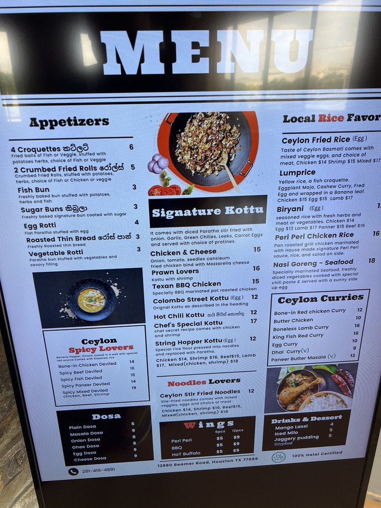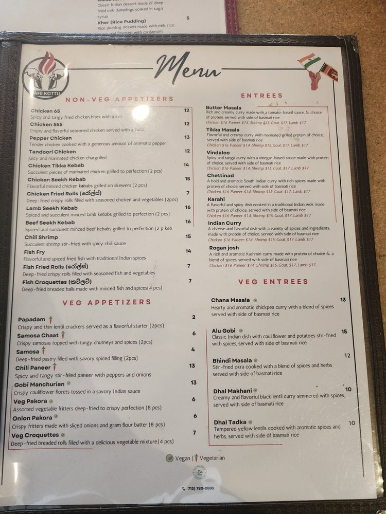 Welcome to Cafe Kottu, a hidden gem located at 5757 Westheimer Rd, Houston, TX. Known for its signature Kottu dishes, this cafe offers a delightful fusion of Sri Lankan flavors that evokes warmth and comfort in each bite. The star dish, Chicken Kottu, is a hearty mix of diced flatted bread paired with fresh veggies, spices, and your choice of meat, all for just $10.99. If you crave something with a twist, try the Texan BBQ Kottu or the Seafood Kottu, both bursting with unique flavors.